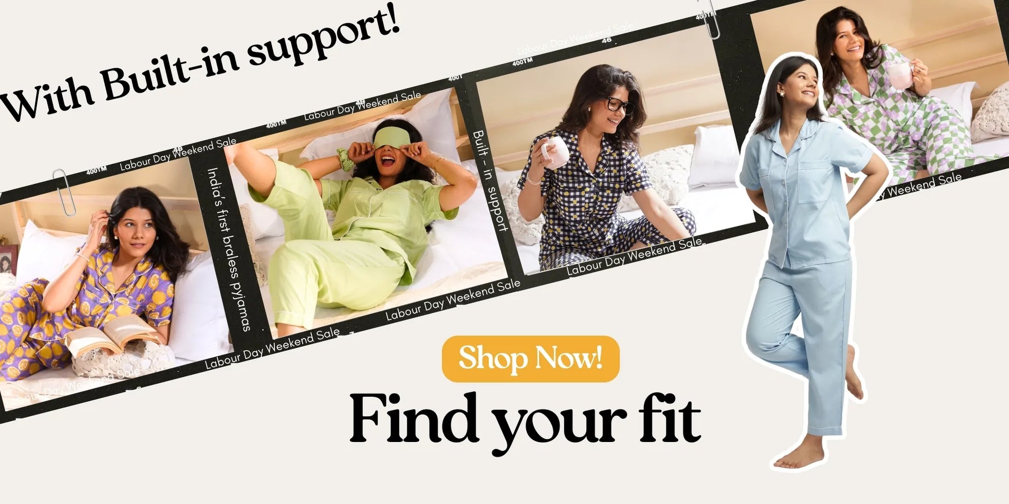 Our braless pyjamas are available in a variety of colours and prints. From solid colours to cute to funky checkered prints, choose your pyjamas according to your mood.